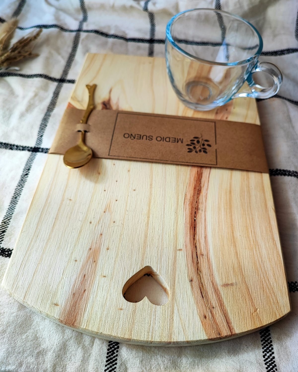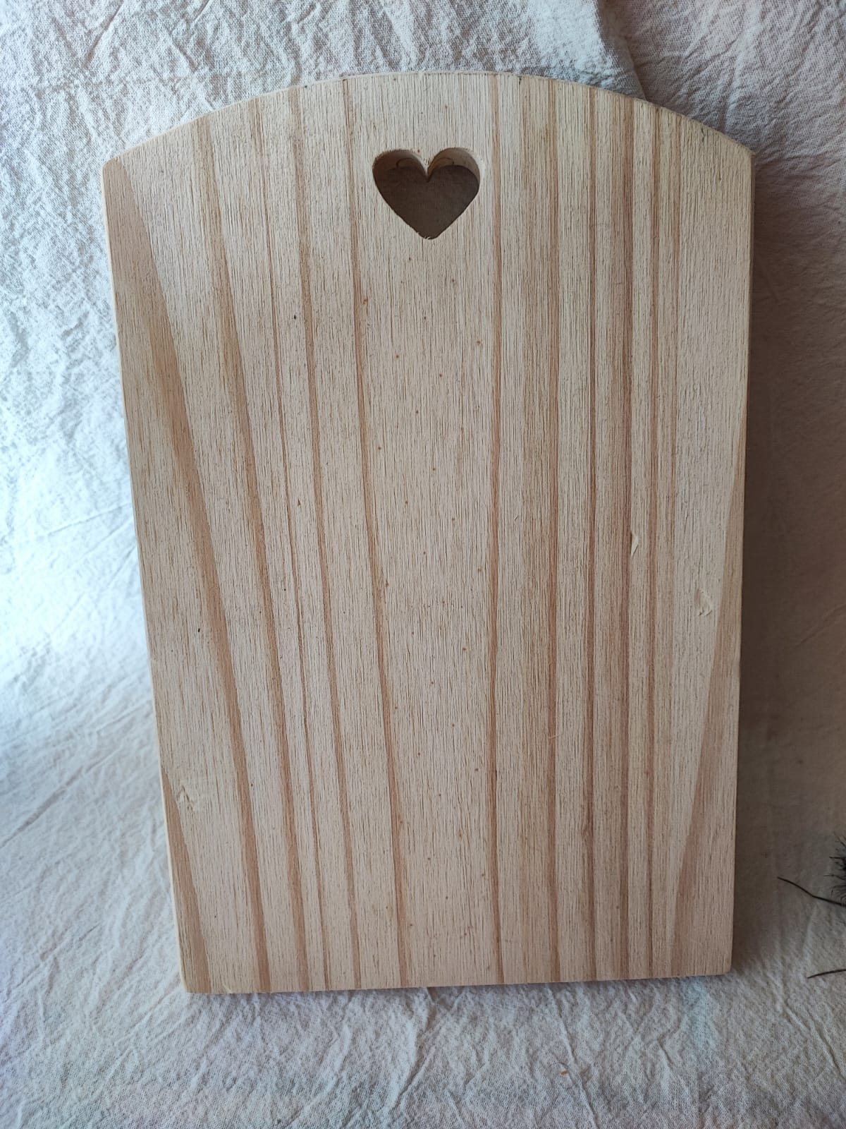 Tabla lisa con calado de corazon. Medida 29cm x 19cm