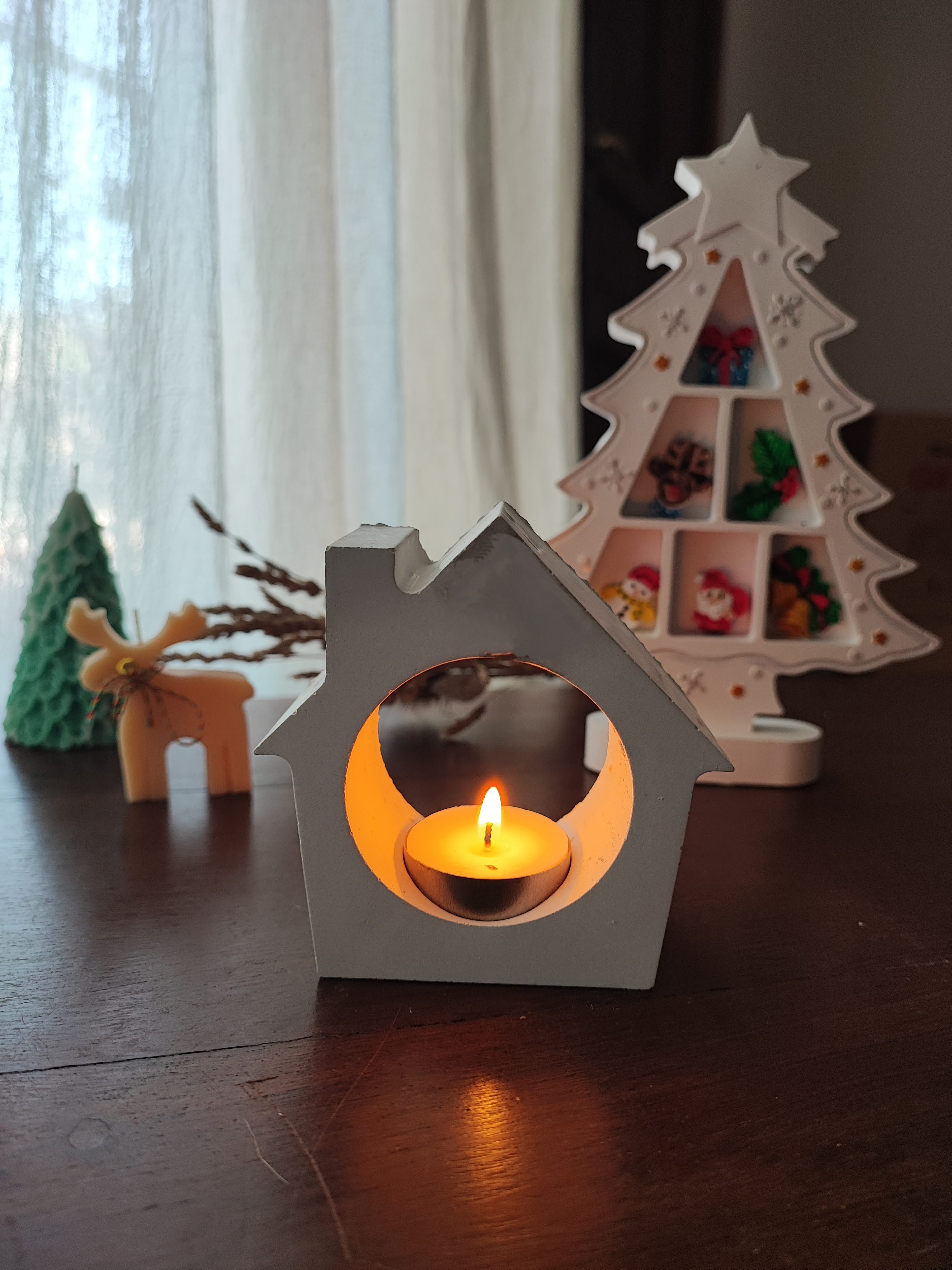 Casita porta vela (NO INCLUYE VELA DE NOCHE), Medidas 9cm de frente x 9cm de alto.. Material yeso cerámico, las piezas se entregan sin sellador ni laca. Son ideales para emprendedores y comercios. Productos que pueden ser intervenidos para darles una impronta única.