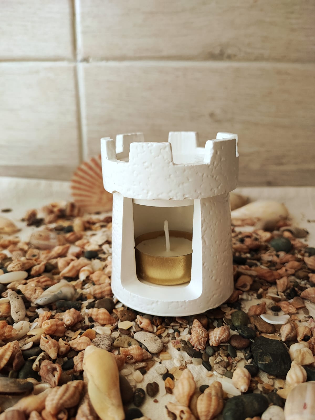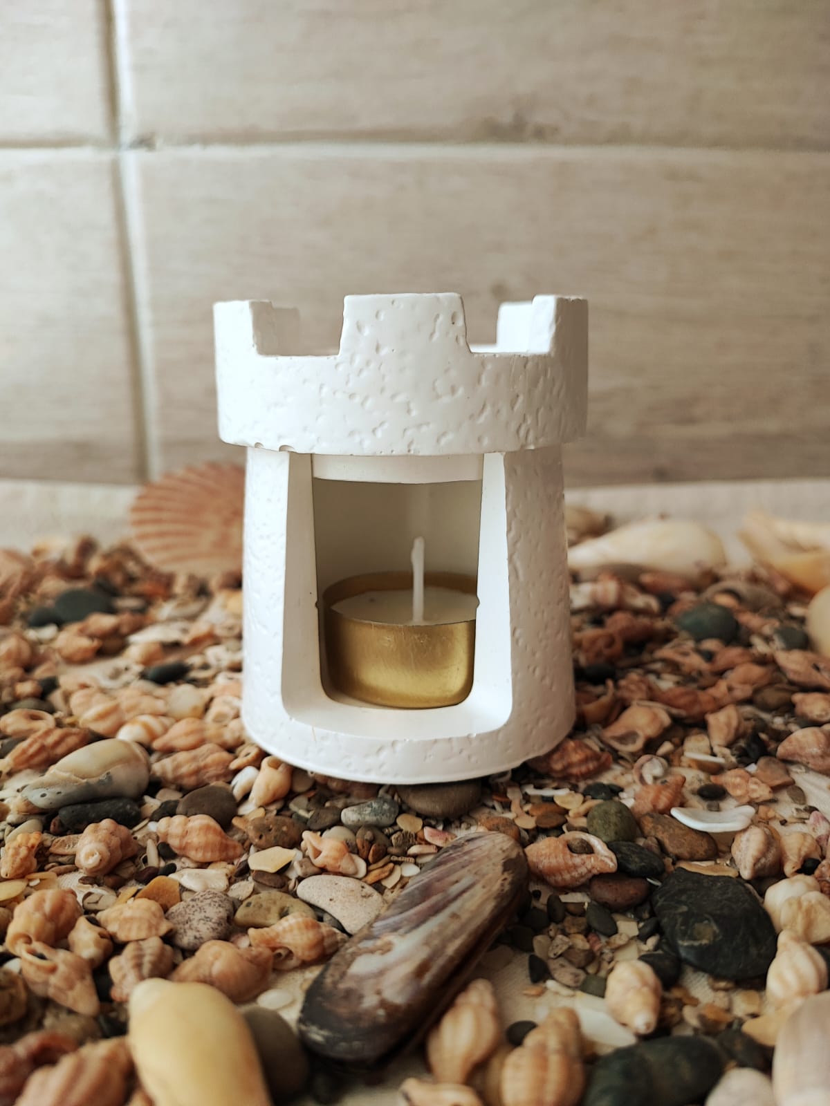 Hornito en forma de castillo. Consta de dos piezas: el techo y el cuerpo. Medida: 8 cm de alto. y 7cm diametro de la base. Material yeso cerámico, la pieza se entrega sin impermeabilizado. Son ideales para emprendedores y comercios.