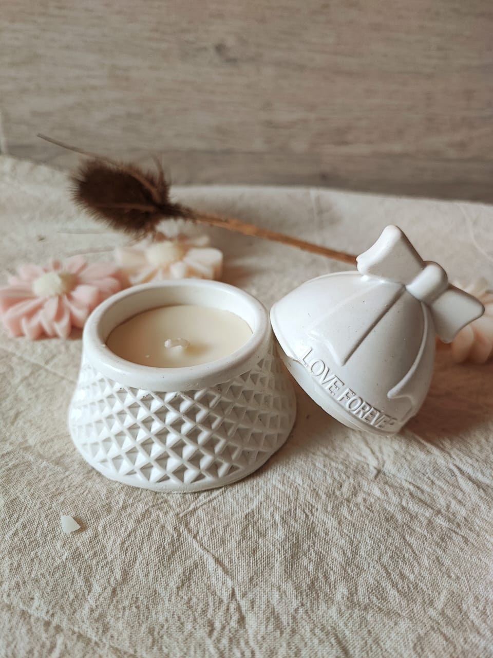 Preciosa!!! campanita contenedor, rellena con vela., Medidas 8cm de diámetro la base x 9cm de alto.. Material yeso cerámico en blanco, la pieza esta impermeabilizada y con vela. Son ideales para emprendedores y comercios.