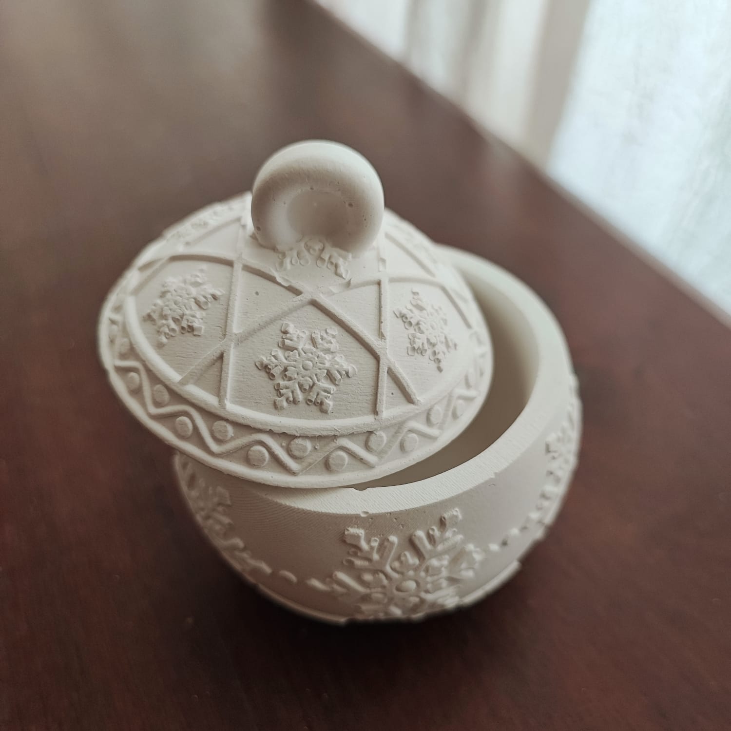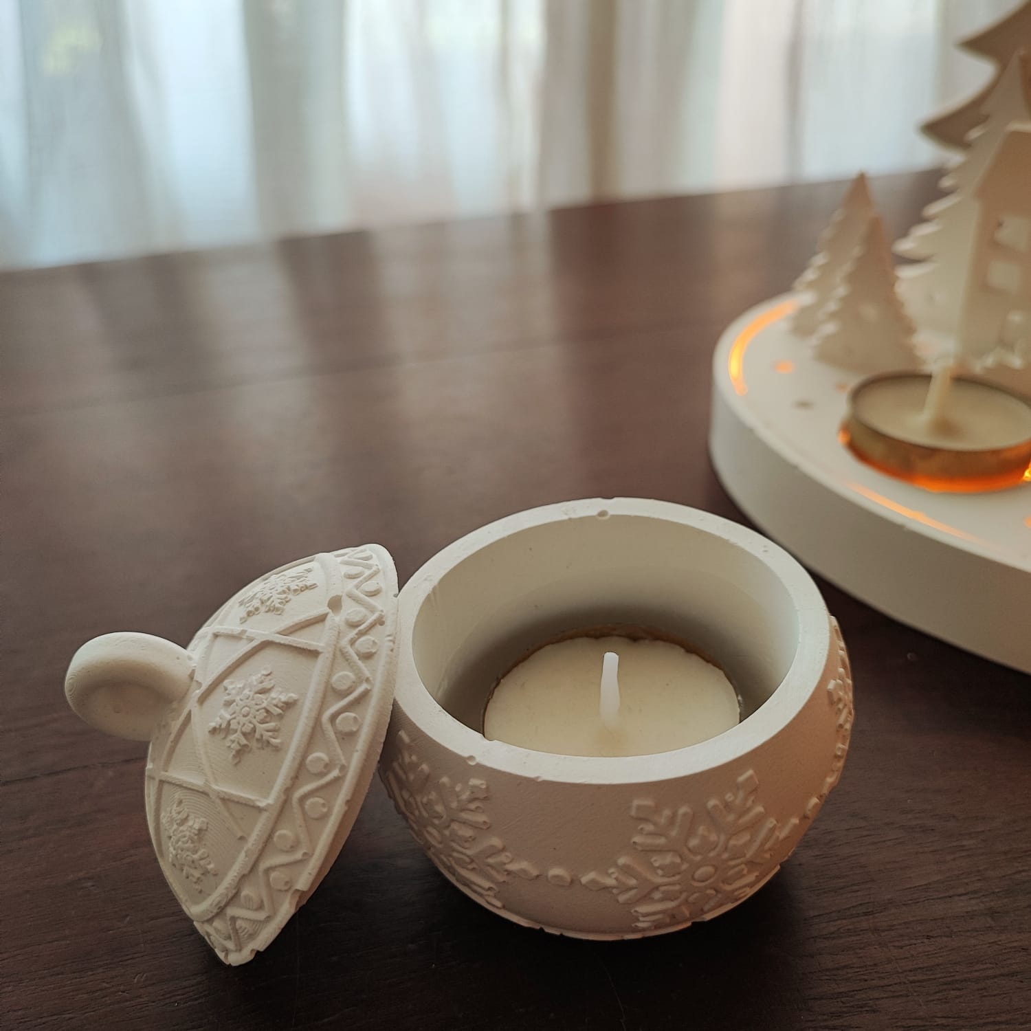 Precio contenedor para vela o bien decorativo, con hermoso relieve de cristales de nieve. Consta de tapa y cuenco. Esta publicacion INCLUYE VELA.