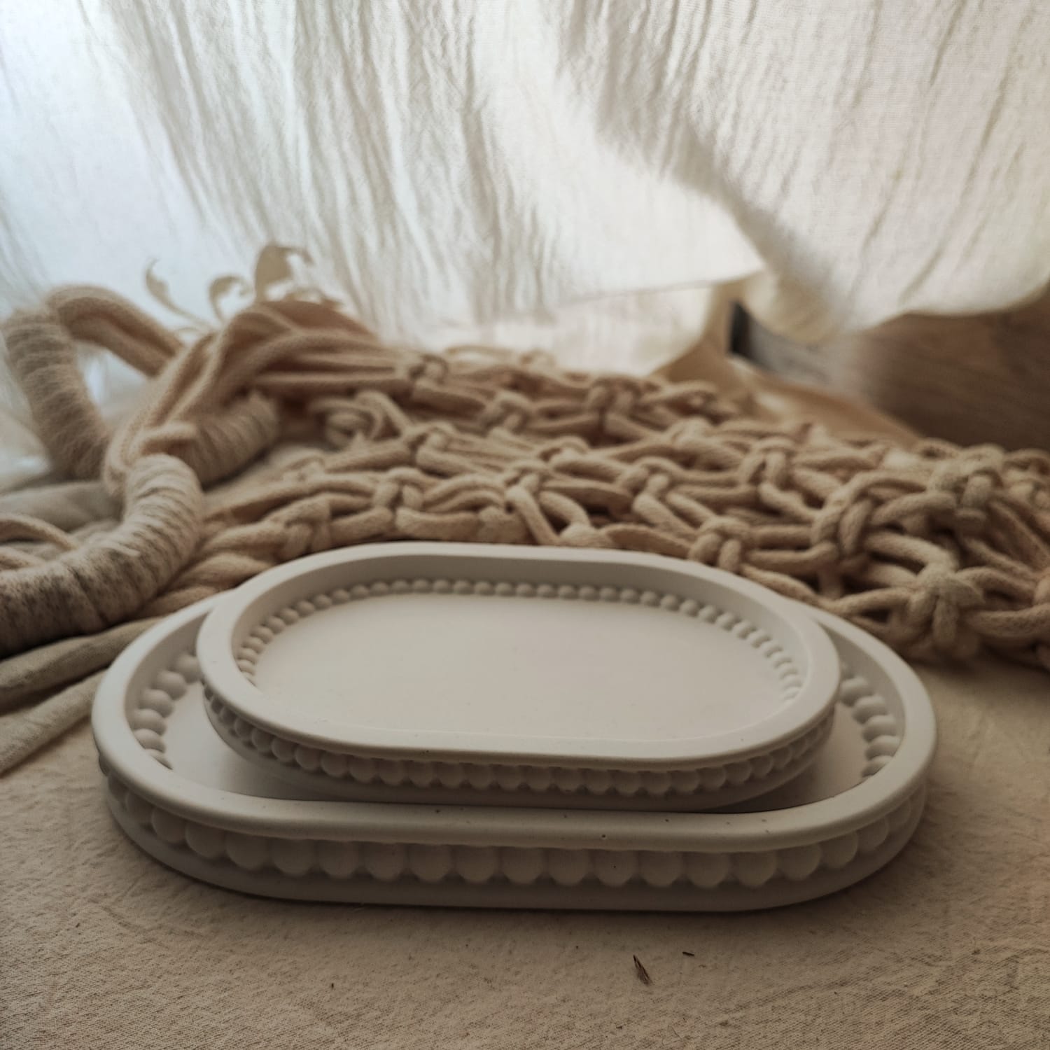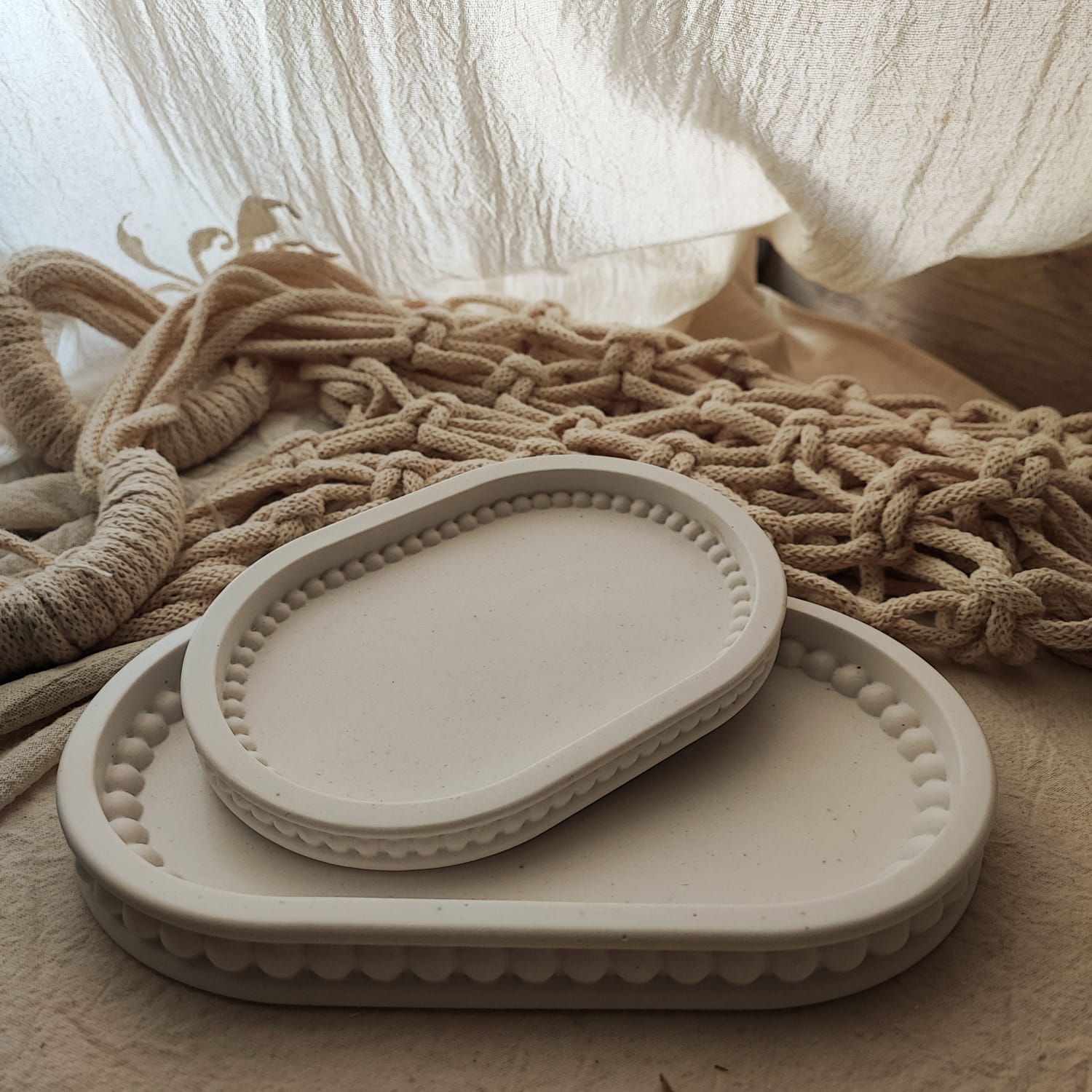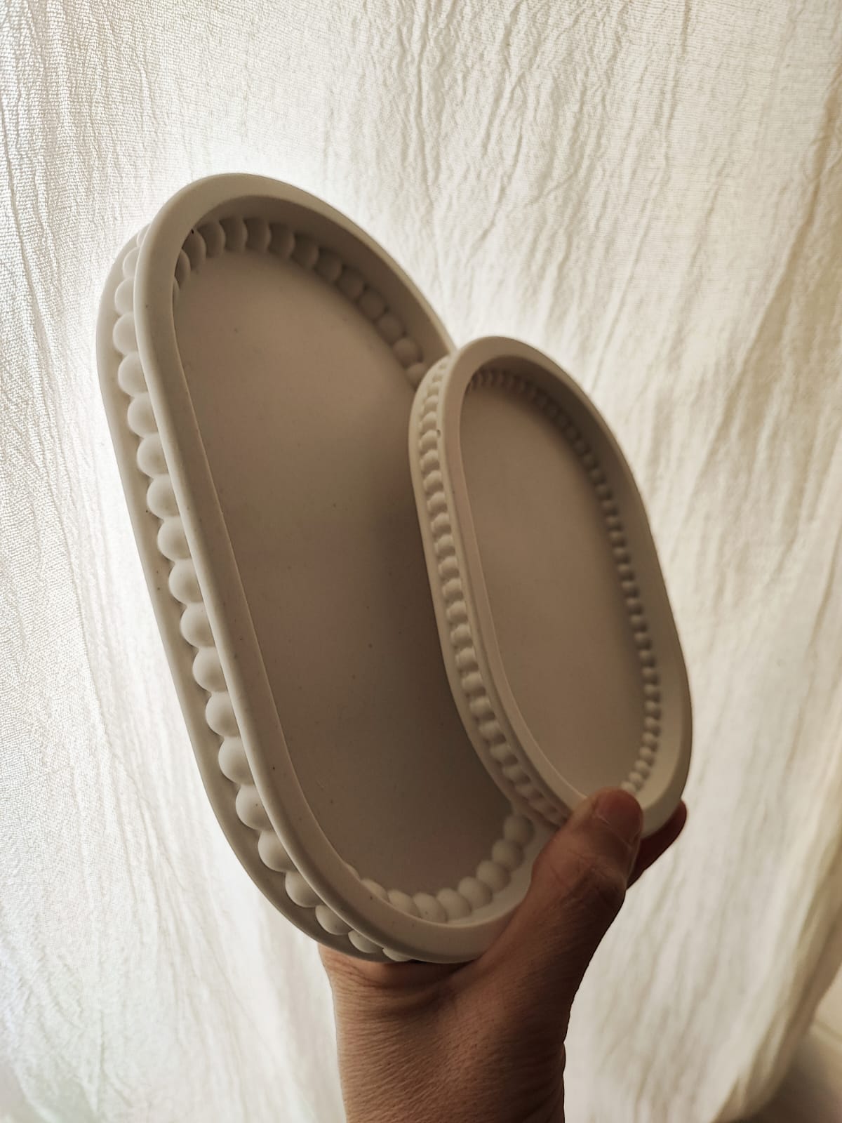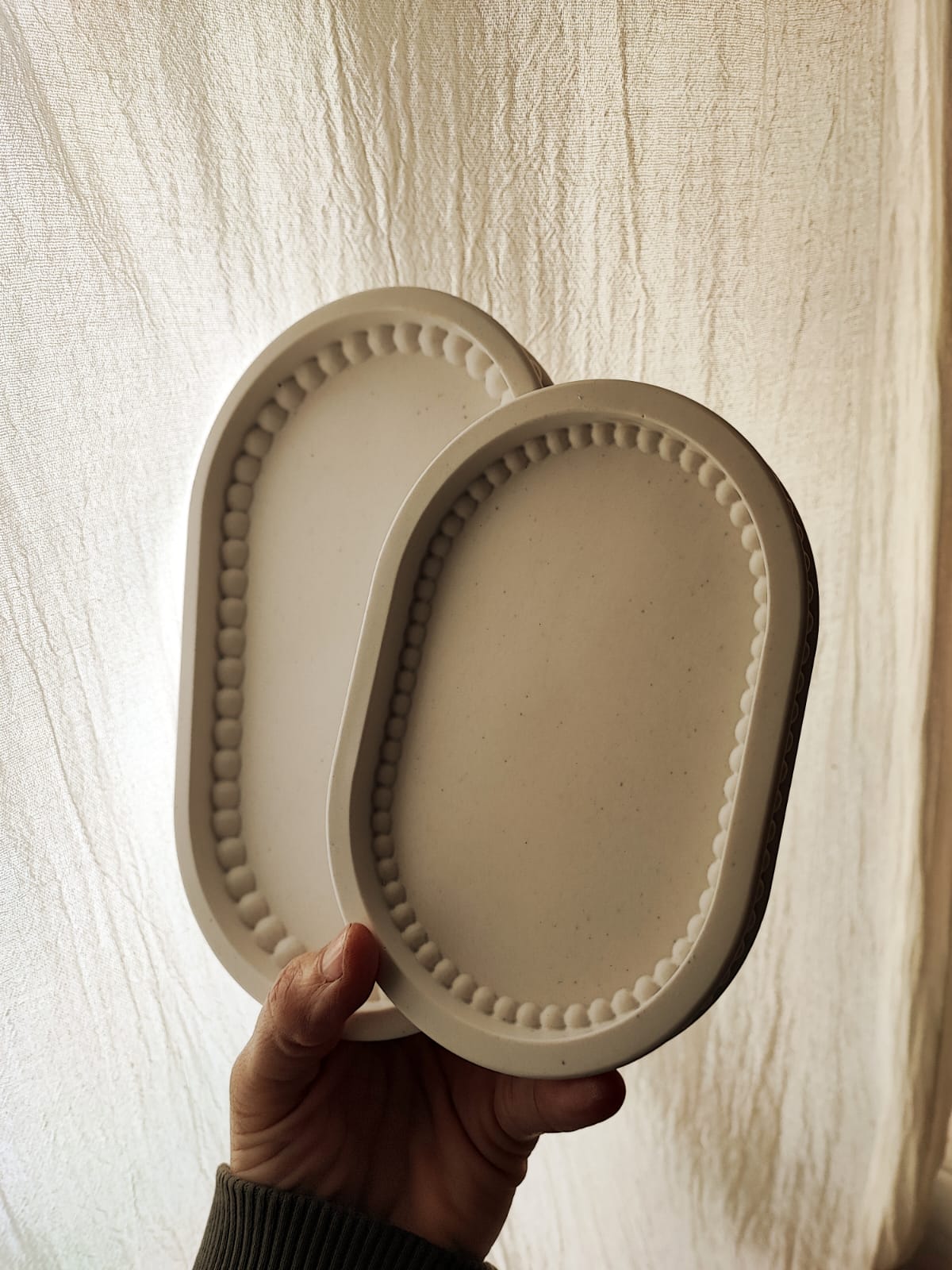 Precioso duo de bandejas ovaladas. Preciosas, con detalle de burbujas por dentro y fuera lo que le da un toque original y elegante.