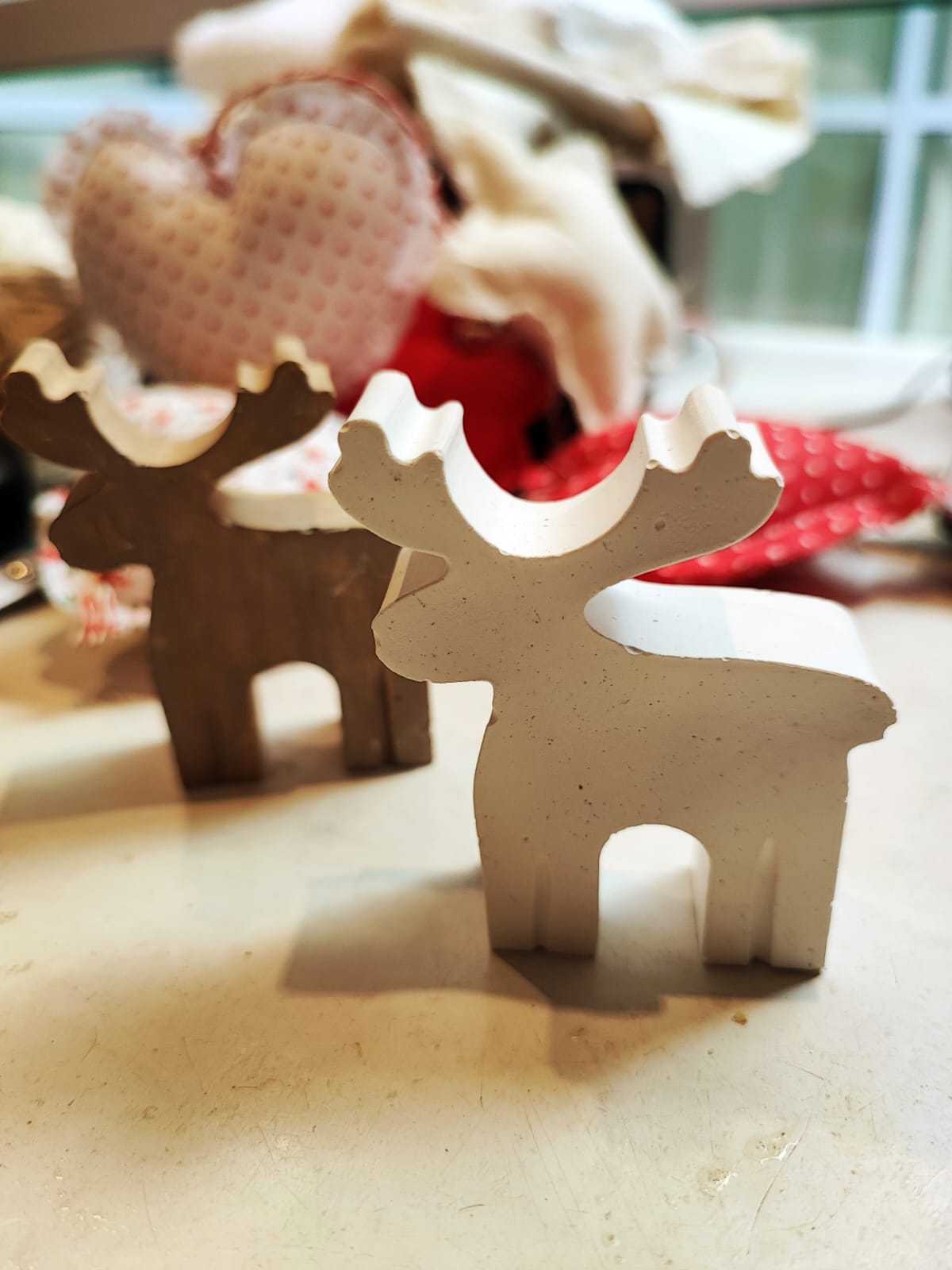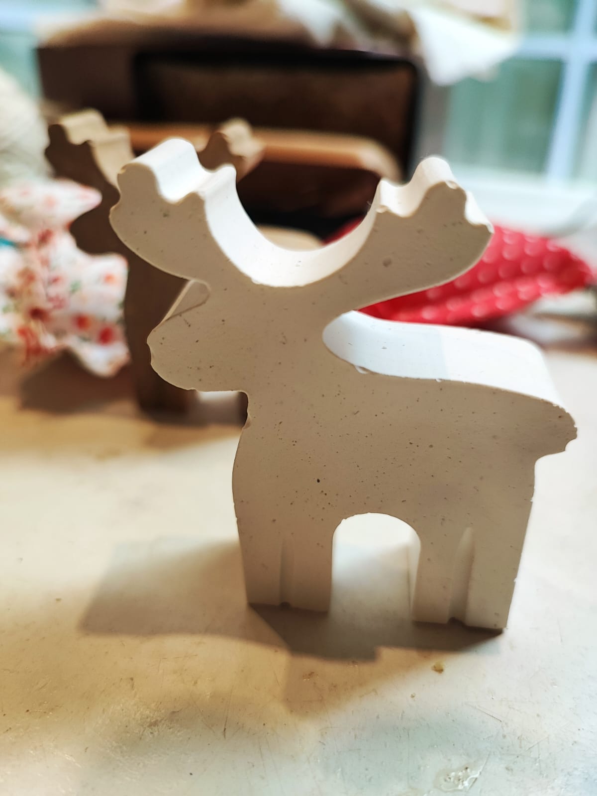 Figura decorativa, reno pequeño en yeso ceramico blanco: medida, 7 cm de alto, 4cm de frente en pies, 2cm de grosor