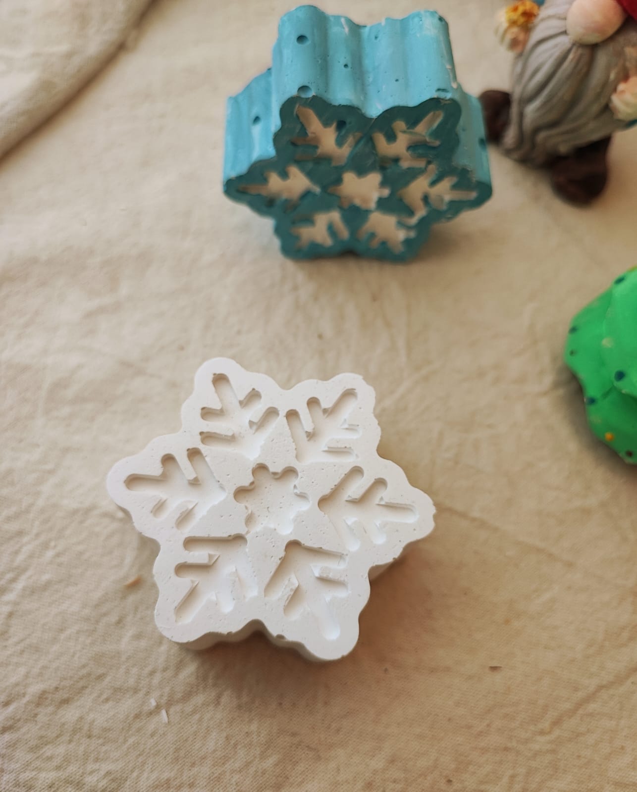 Figura decorativa, copo de nieve en yeso ceramico blanco: medida, 5,5cm de punta a punra, 2,5cm de grosor
