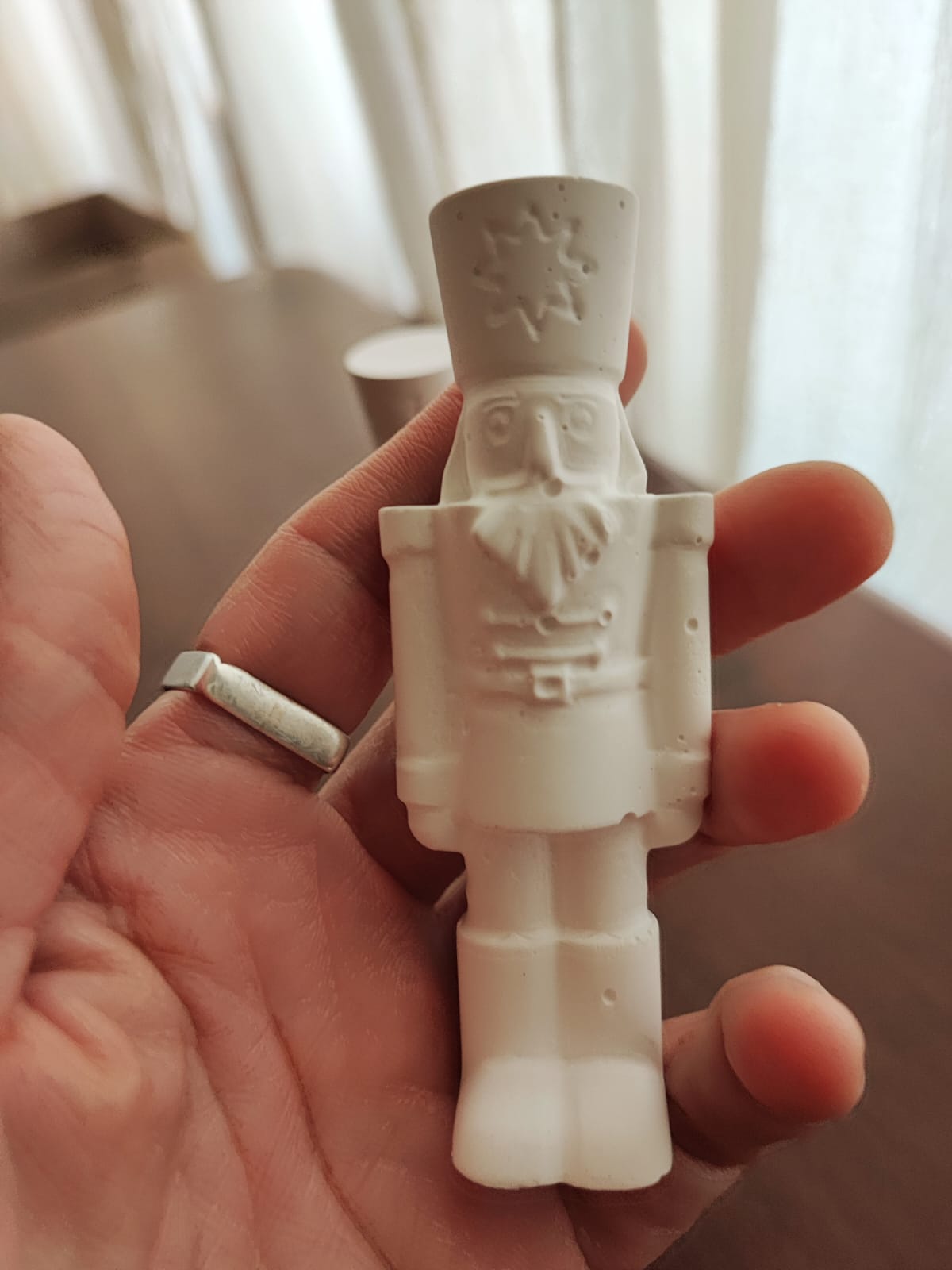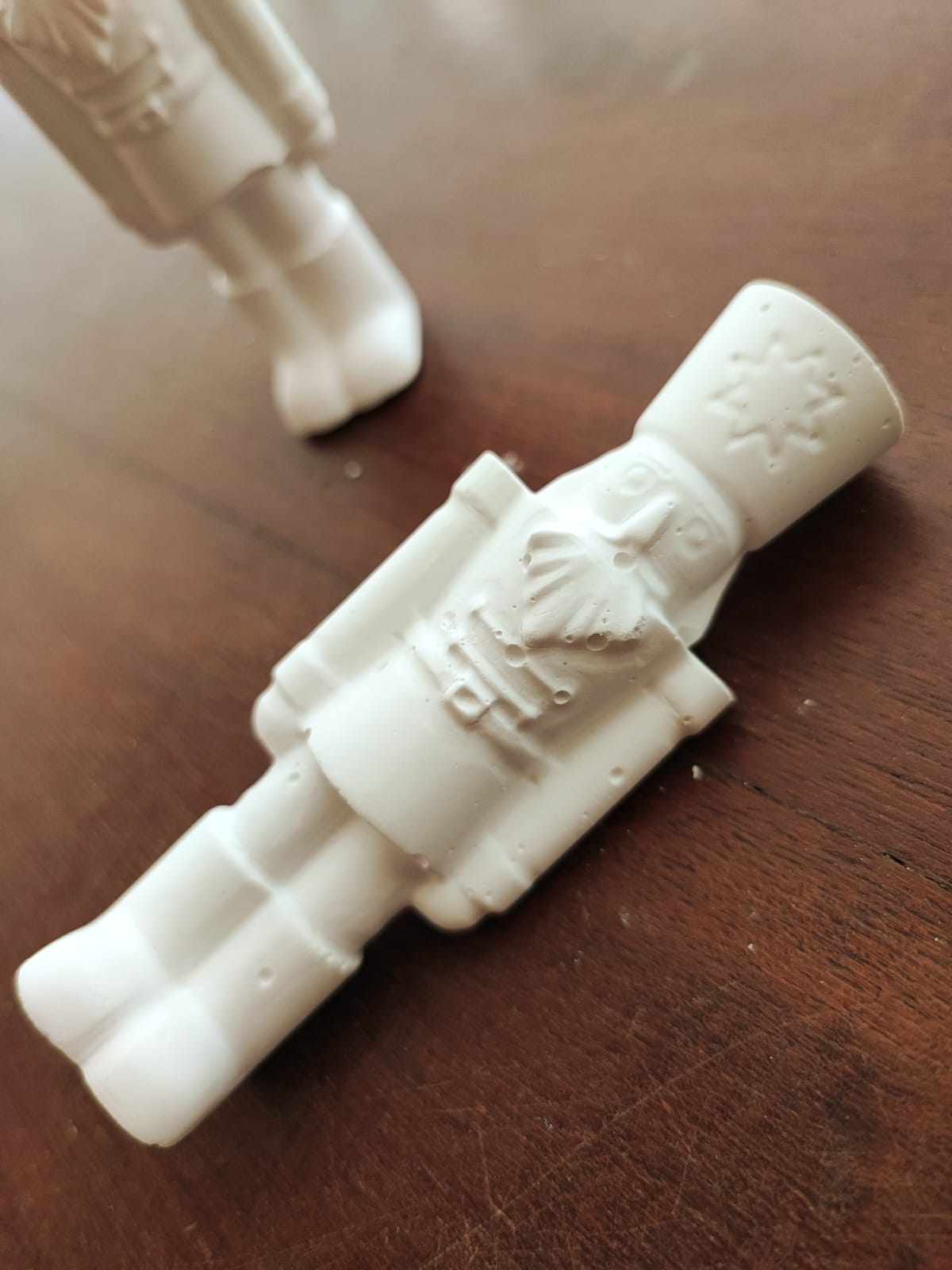 Figura decorativa, cascanueces/soldado en yeso ceramico blanco: medida, 9 cm de alto.