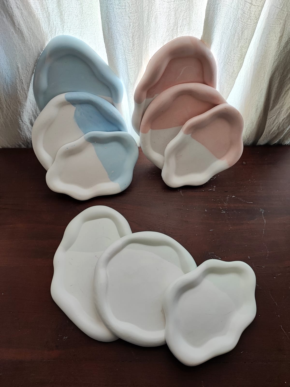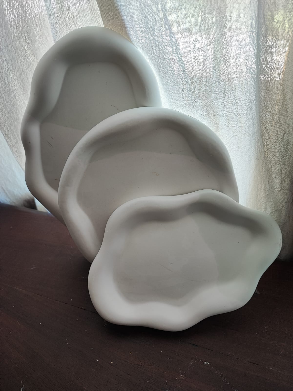 Trio de las hermosas bandejas nubes, blancas con color. Incluye