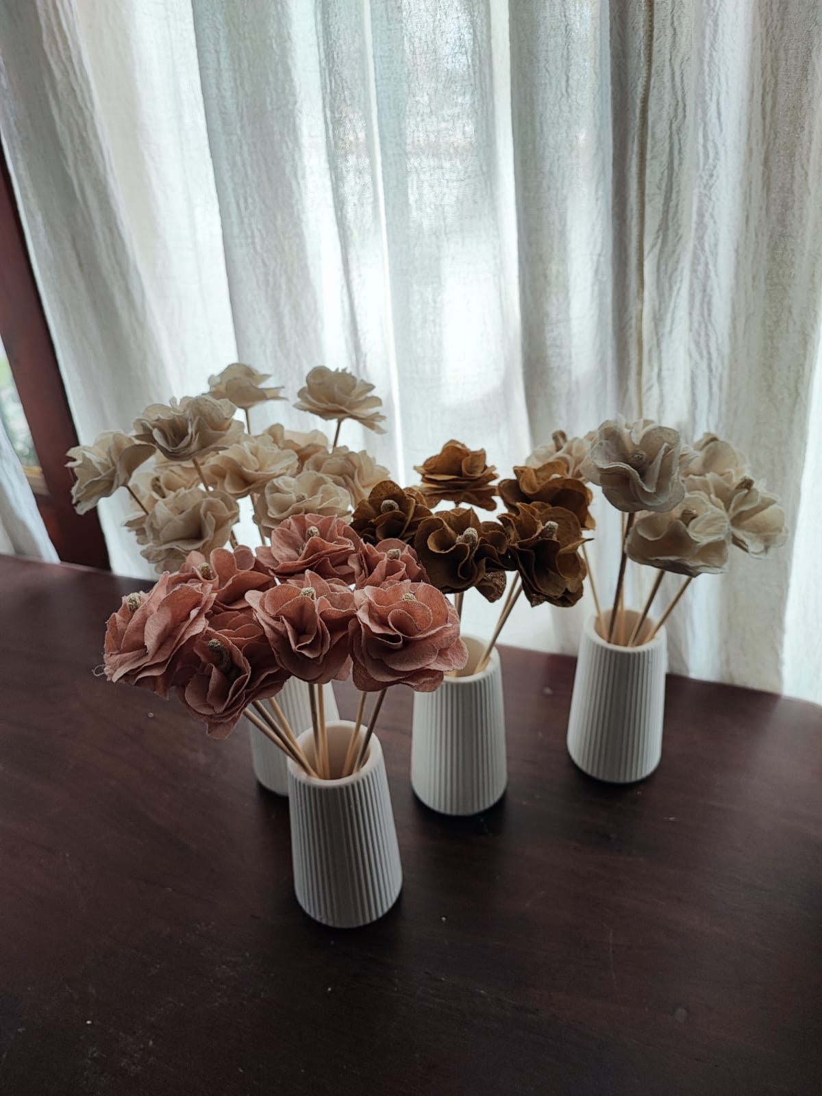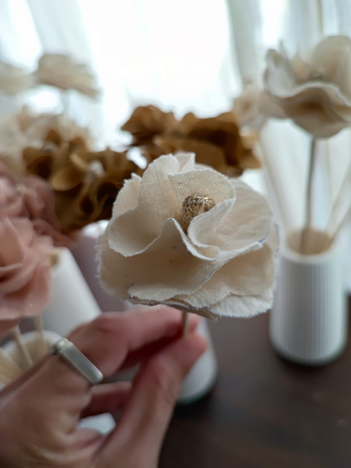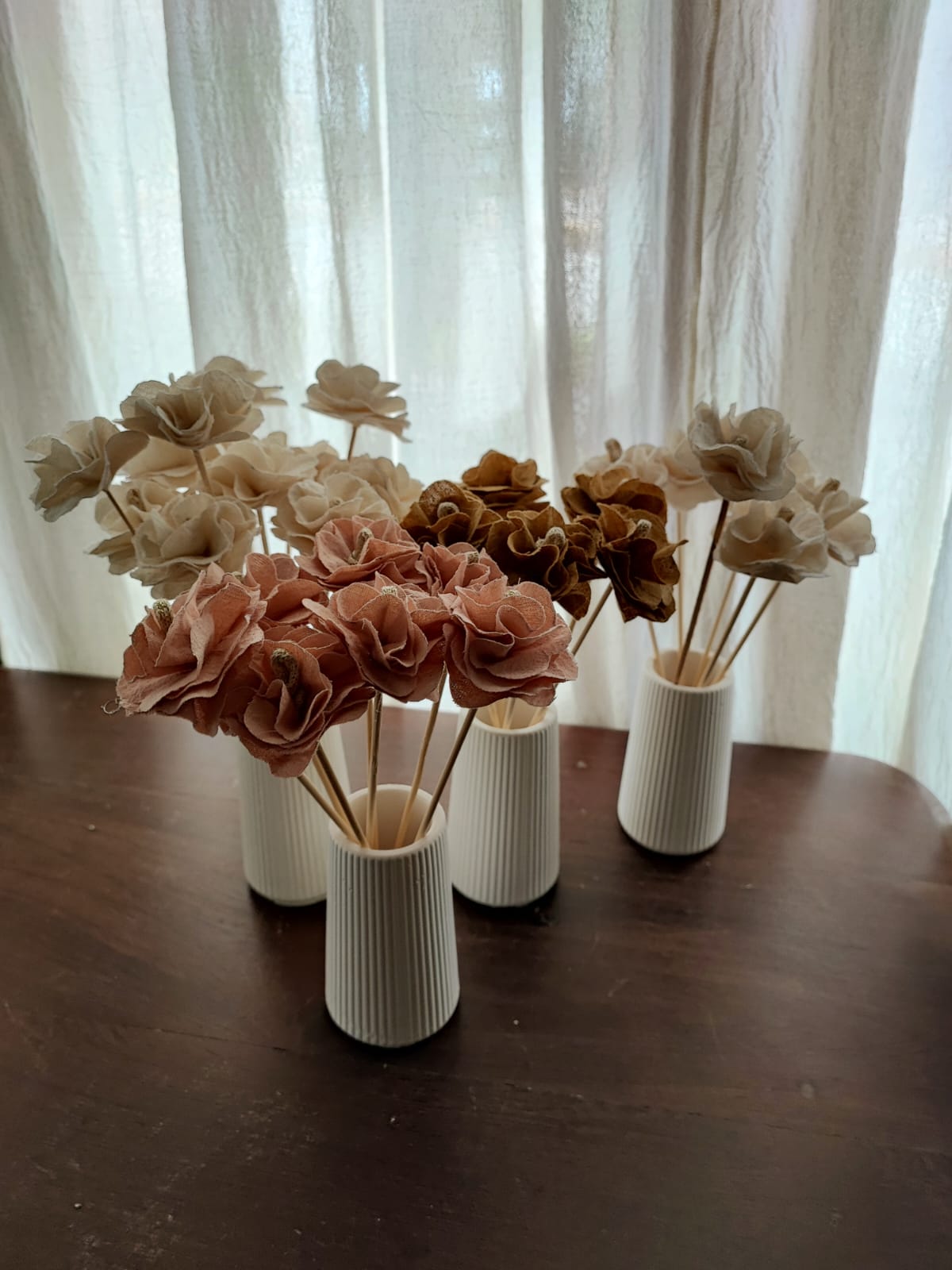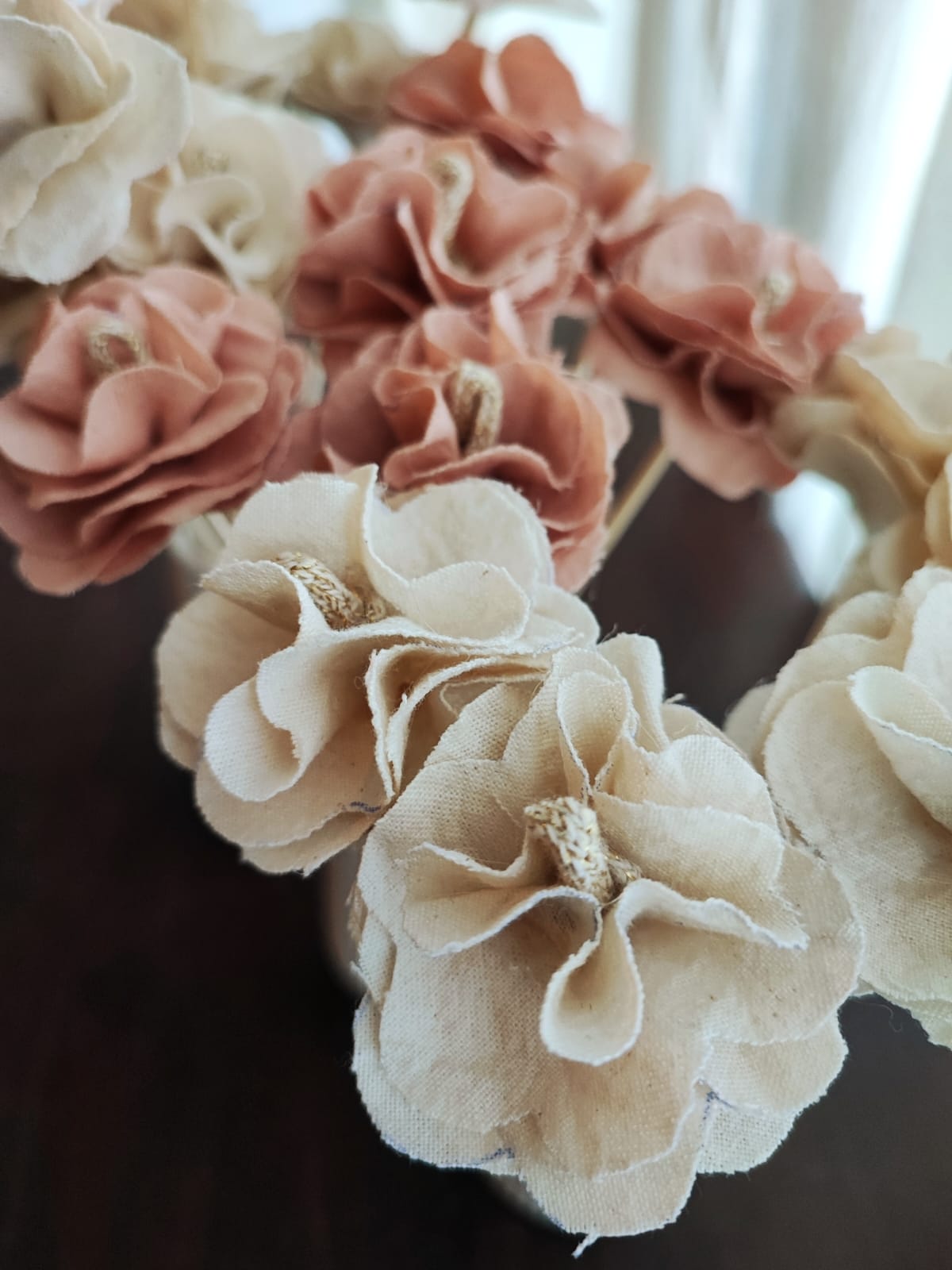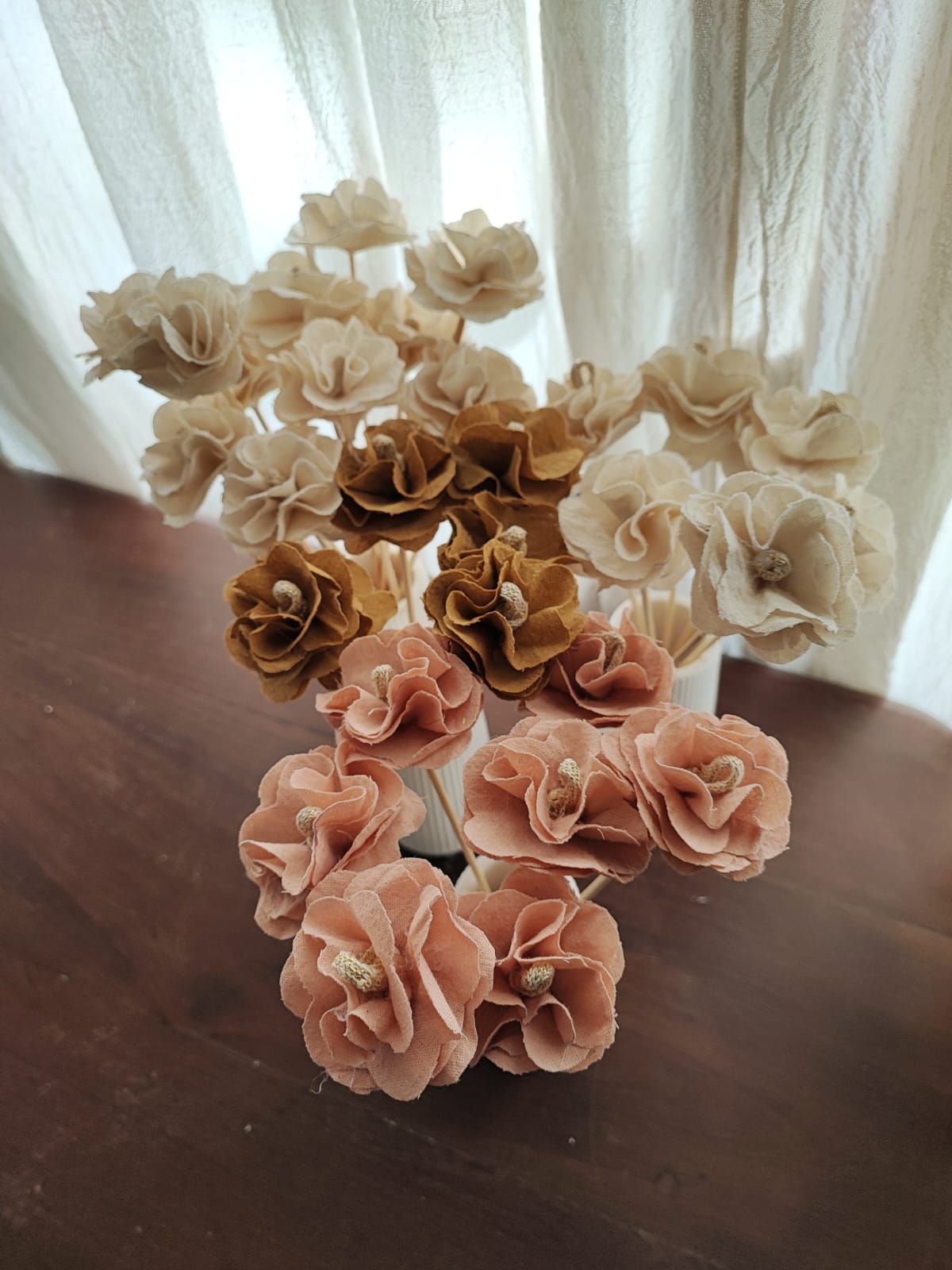 Hermosas flores en tela. Precio individual. El precio de publicaciòn es por una flor. alto aproximado del palillo 18cm.