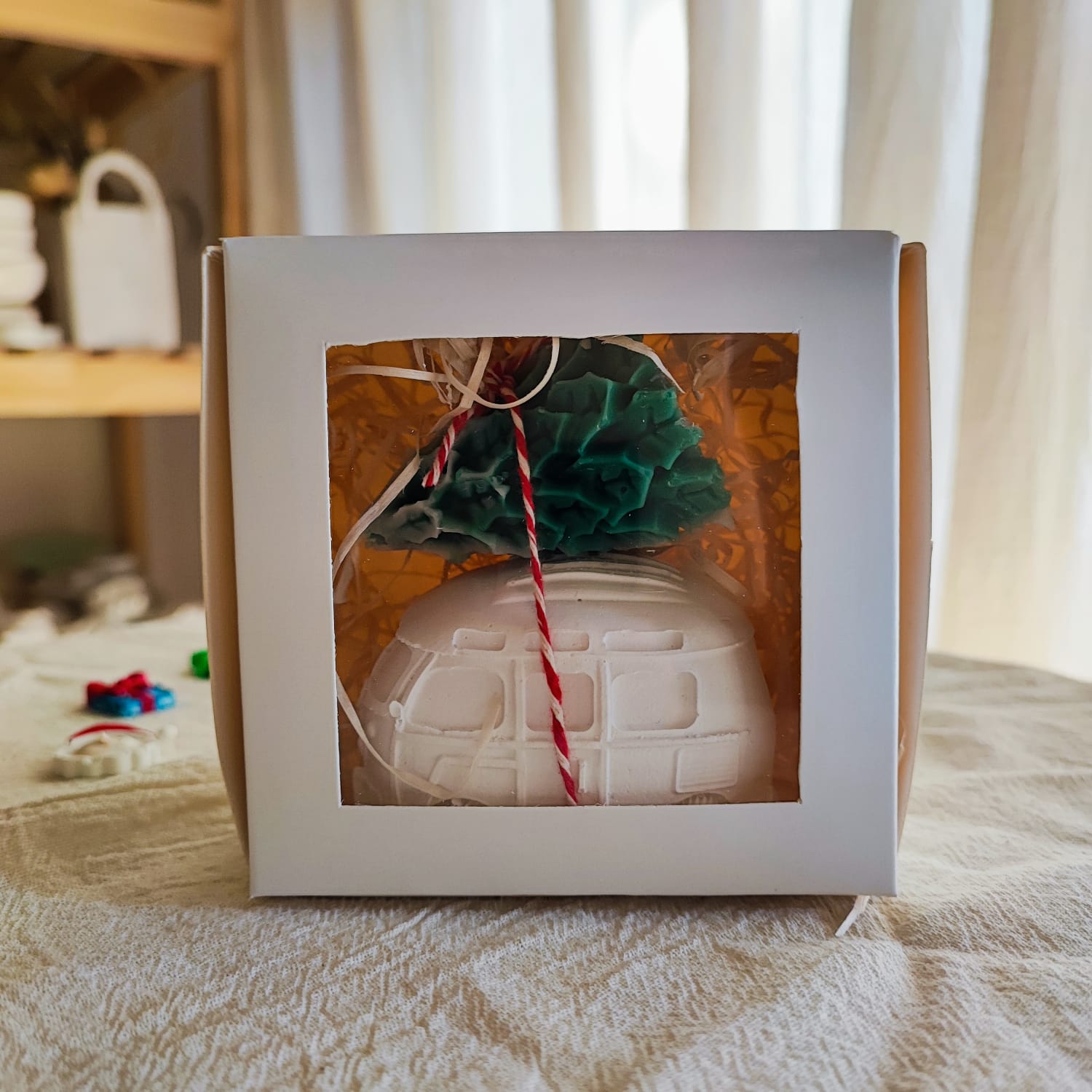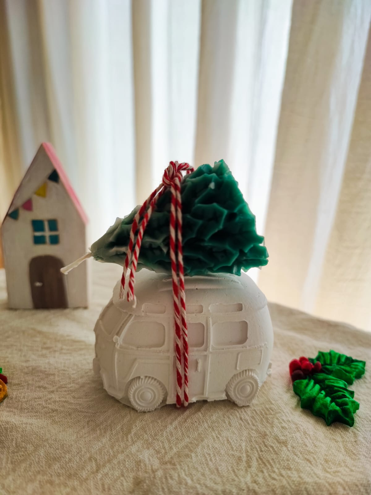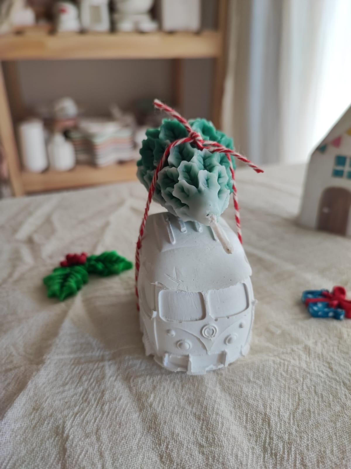 Este tierno y hermoso duo esta compuesto por una combi de yeso ceramico blanco, pieza decorativa sin pintar ni impermeabiliza, de 7cm x 4cm x 4,5cm, con una vela en forma de pino, medida aproximada 6cm de alto. (con fragancia)