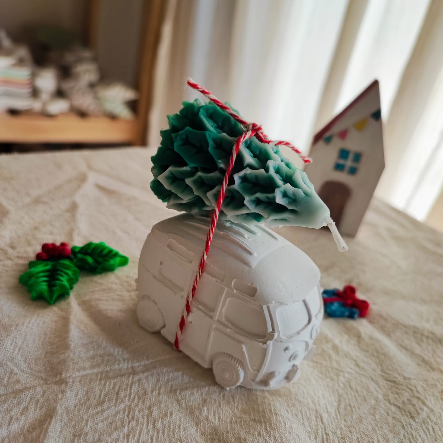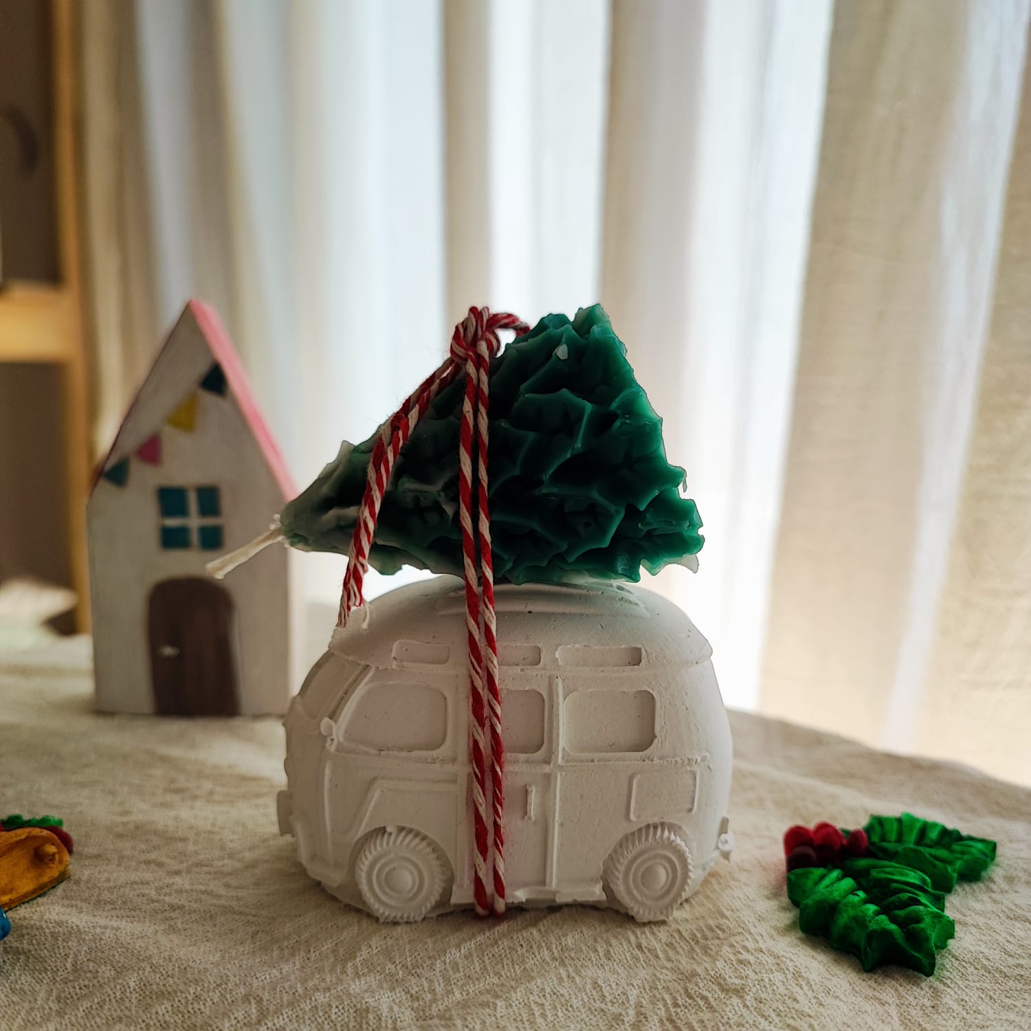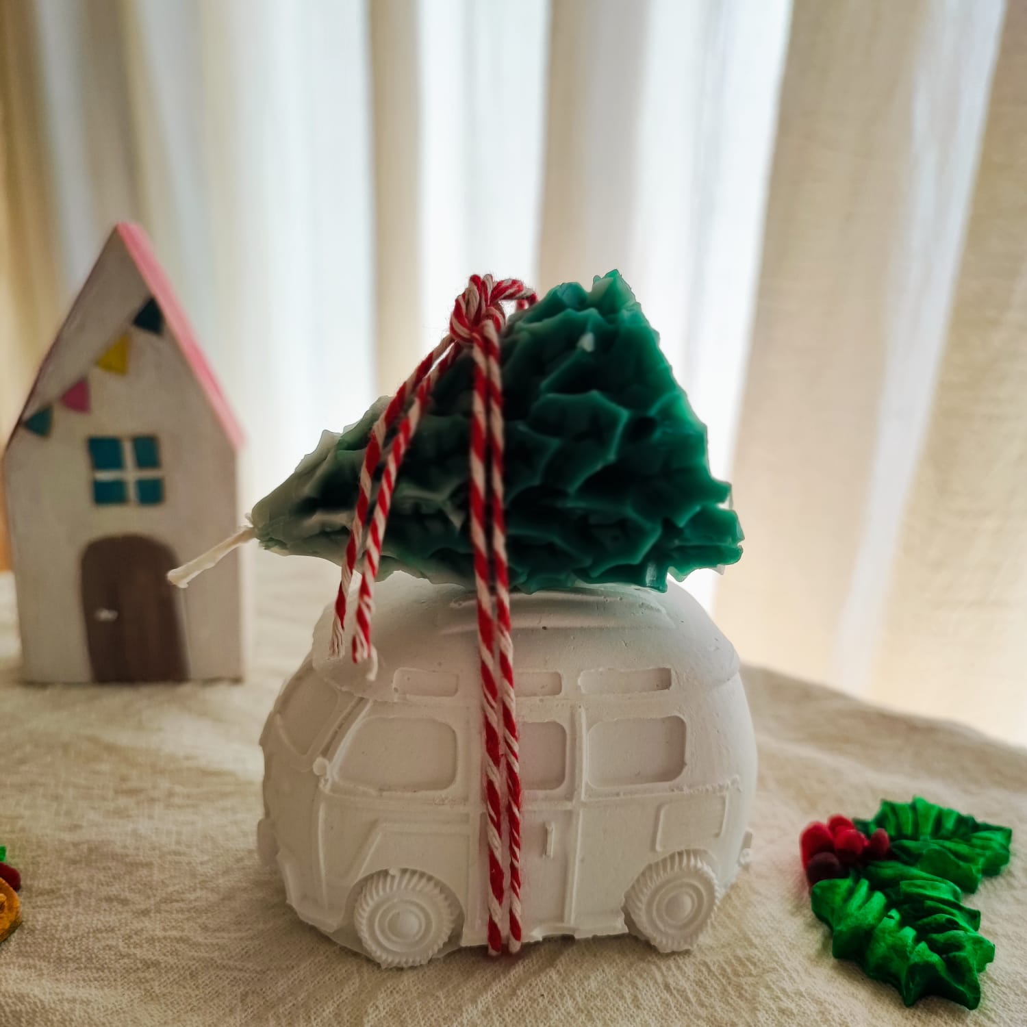 Este tierno y hermoso duo esta compuesto por una combi de yeso ceramico blanco, pieza decorativa sin pintar ni impermeabiliza, de 7cm x 4cm x 4,5cm, con una vela en forma de pino, medida aproximada 6cm de alto. (con fragancia)