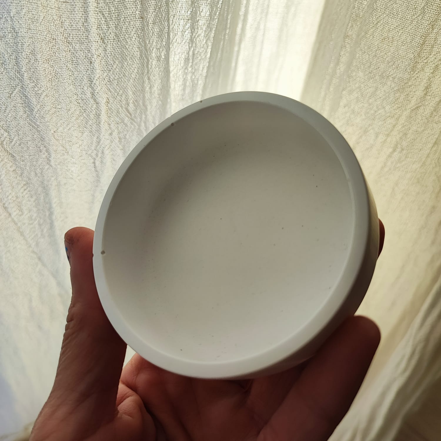 Medida del cuenco. 7,5cm diametro de boca, 2,5cm de altura, 1,5cm de profundidad