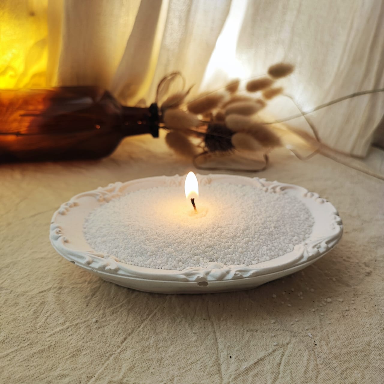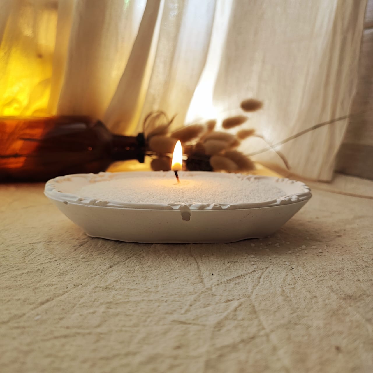 Material yeso cerámico blanco, producto NO impermeabilizado. Se puede pintar para darle diferentes aspectos.
